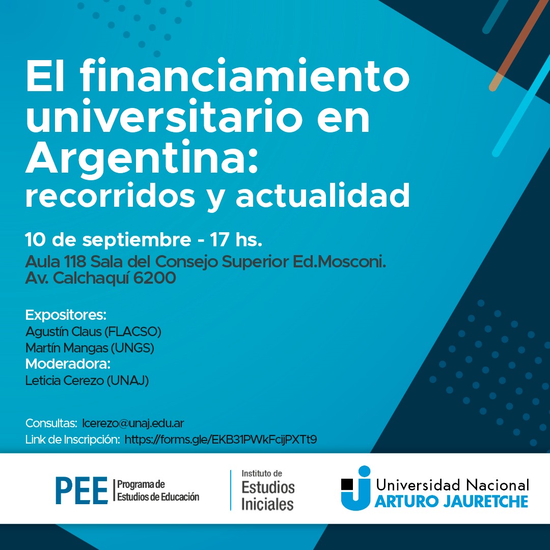 El día 10 de setiembre de 2025 se llevó adelante en UNAJ, en modalidad híbrida, el conversatorio “El financiamiento universitario en Argentina: Recorridos y actualidad”. El encuentro contó con la exposición de Agustín Claus (FLACSO) y Martín Mangas (UNGS), siendo moderado por Leticia Cerezo (UNAJ)